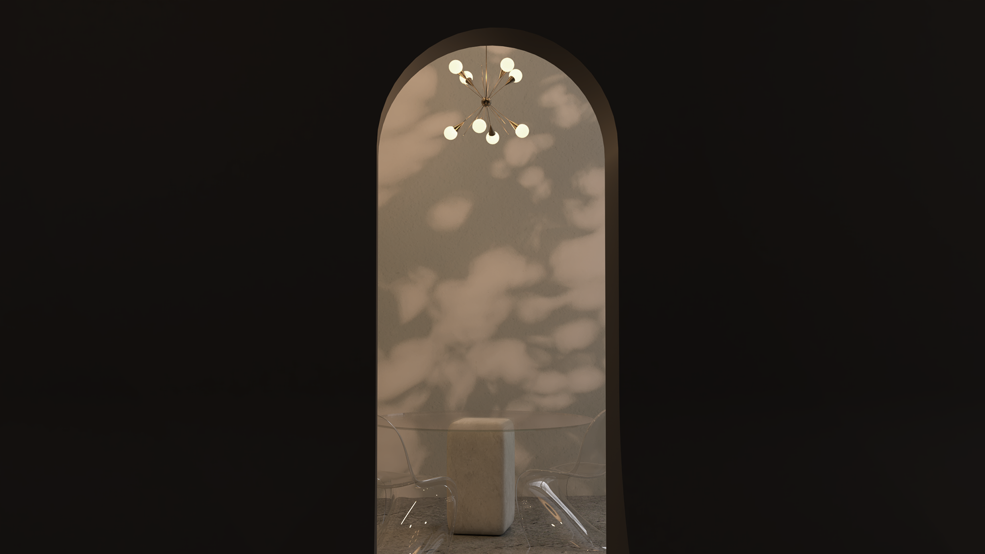 The design explores how the grass can interact with and diffuse the lighting, casting subtle shadows and soft illumination throughout the space.